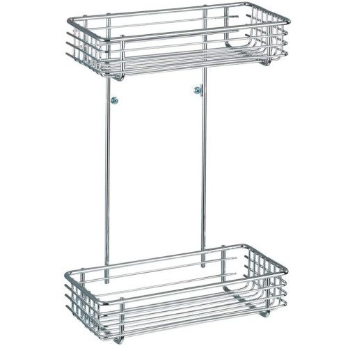 Настенная металлическая полка для ванной 16850100 Milano. Двухуровневая. Размер: 25x37x12cm. В комплекте крепежные винты и дюбеля. Материал: Металл. Цвет: Хром.