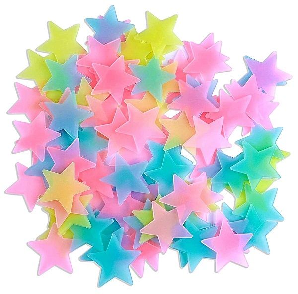 Набор из 100 флуоресцентных звезд. Звезды поглощают свет и поэтому светятся в темноте. Они идеально подходят для украшения детской комнаты (например, на потолке). Простая установка на любую поверхность благодаря использованию двусторонних наклеек.