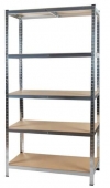 ТЕХНИЧЕСКИЕ ХАРАКТЕРИСТИКИ Размеры (высота / ширина / глубина): 180x90x40см размеры полки (ширина / высота): 89.3 x 39.3см Максимум. нагрузка на полку: 175 кг (всего 875 кг на всю стойку) количество полок: 5 материалы: оцинкованная сталь 0,8мм, плита МДФ 4мм Монтаж: безвинтовой (запрессованные поперечины) вес: ~ 15,5 кг Гарантия продавца: 24 месяца