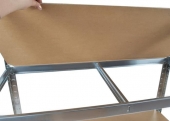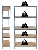 Стеллаж идеален для таких помещений, как подвал, гараж, склад, магазин. Стеллаж прост в сборке (безвинтовая сборка). Он усилен перекладиной на каждой полке, чтобы он был устойчивым и вес распределялся равномерно. Стеллаж монтируется на прессовую посадку, не требует дополнительных инструментов для монтажа (можно использовать резиновый молоток и отвертку, чтобы упростить монтаж каркаса). Монтажные отверстия расположены по всей длине ножек, что позволяет задавать любую конфигурацию высоты полок. Ножки стеллажа разделены на две части, так что его тоже можно сложить как верстак. Стеллажи можно комбинировать между собой и крепить к стенам (особенно в случае больших нагрузок полки следует закрепить). Стеллаж изготовлен из оцинкованной стали и плит МДФ. Ножки защищены пластиковыми накладками.
