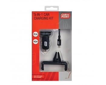2.4A 3in1 iPhone lādētājs ar 12/24V piepīpētāju + telefona turētājs CARPOINT (0517033)