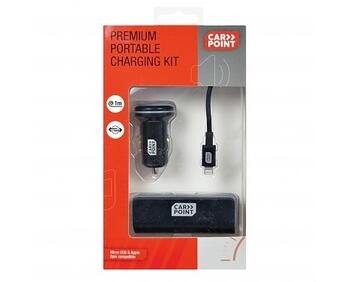Auto piepīpētājs ar Micro USB + Iphone lādētāju + PowerBank 2200mAh CARPOINT (0517034)