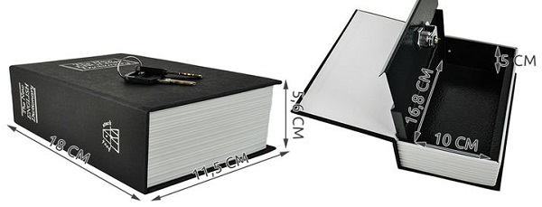 ЕМКОСТЬ - он легко вмещает банкноты, монеты, а также драгоценности и другие ценности, которые будут хорошо скрыты от несанкционированного доступа. СПЕЦИФИКАЦИЯ - внешние размеры (длина / ширина / высота) 18 / 11,5 / 5,6 см; внутренние размеры 16,8 / 10 / 5 см; вес 490 г. СТАЛЬНОЙ СЕЙФ ВНУТРИ - внешний корпус хорошо имитирует настоящую книгу, а внутри есть короб из стали, в который трудно проникнуть, даже если обнаружено, что это место для хранения ценностей. ЗАМОК С КЛЮЧЕМ - внутренний стальной корпус закрыт ключом, что повышает уровень безопасности хранящихся ценностей. ТЕХНИЧЕСКИЕ ХАРАКТЕРИСТИКИ цвет: черный внешние размеры (длина / ширина / высота): 18 / 11,5 / 5,6 см внутренние размеры (длина / ширина / высота): 16,8 / 10/ 5 см Вес: 490 г В КОМПЛЕКТЕ сейф ключи x2 Гарантия продавца: 24 месяца