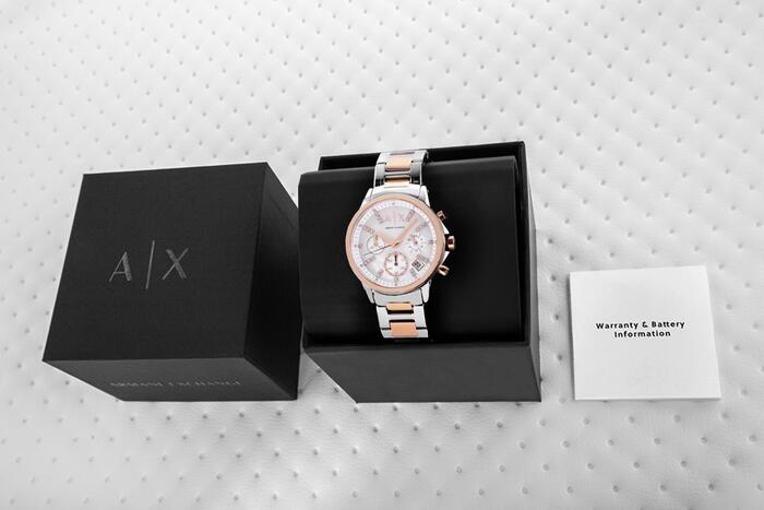 • Бренд: Armani Exchange • Модель: AX4331 • Механизм: точный кварцевый, на батарейке • Циферблат: аналоговый, с изысканной перламутровой отделкой • Корпус: круглый, из нержавеющей стали • Стекло: минеральное, прочное и прозрачное • Браслет: стальной браслет • Функции: нет • Водозащита: 5 ATM — защита от брызг и кратковременного контакта с водой • Гипоаллергенно: да — не содержит никель, безопасно для кожи • Диаметр корпуса: 36 мм • Диаметр циферблата: 30 мм • Толщина корпуса: 8 мм • Ширина браслета: 18 мм ... • Функции: нет • Водозащита: Water Resistant (WR) — защита от брызг • Гипоаллергенно: да — не содержит никель, безопасно для кожи • Размер корпуса: 20 × 22 мм • Размер циферблата: 16 × 18 мм • Толщина: 7,5 мм • Ширина браслета: 14 мм • Охват запястья: макс. около 185 мм — регулируется Цветовое решение: • Корпус: серебристый • Циферблат: шампань-золото • Часовые метки: чёрные • Стрелки: золотые • Браслет: двухцветный — серебристый и золотой Гарантия продавца: 24 месяца