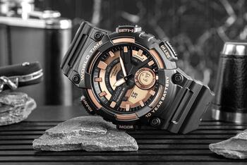 • Бренд: CASIO • Референс: AEQ-110W-1A3VDF • Механизм: точный кварцевый с аналоговым и цифровым отображением • Отображение: аналоговое + цифровое • Корпус: из полимерного материала (смолы) • Безель: смола • Стекло: пластиковое (resin glass) • Ремешок: из полимерного материала (смолы) • Стандартные функции: время, минуты, секунды, 12/24-часовой формат, мировое время, секундомер, таймер обратного отсчёта, будильники, календарь • Дополнительные функции: срок службы батарейки до 10 лет, мировое время (30 городов), 3 будильника, двойное время • Водозащита: 10 bar (100 m) — подходит для плавания и водных видов спорта на поверхности (не для дайвинга) • Гипоаллергенно: да — никель не содержится, безопасно для кожи • Размер корпуса: 52 × 47 мм • Размер циферблата: 35 × 30 мм ... • Ремешок: из полимерного материала (смолы) • Стандартные функции: время, минуты, секунды, 12/24-часовой формат, мировое время, секундомер, таймер обратного отсчёта, будильники, календарь • Дополнительные функции: срок службы батарейки до 10 лет, мировое время (30 городов), 3 будильника, двойное время • Водозащита: 10 bar (100 m) — подходит для плавания и водных видов спорта на поверхности (не для дайвинга) • Гипоаллергенно: да — никель не содержится, безопасно для кожи • Размер корпуса: 52 × 47 мм • Размер циферблата: 35 × 30 мм • Толщина: 15 мм • Ширина ремешка: 22 мм Цветовое решение: • Корпус: чёрный • Циферблат: шампань-золото • Стрелки: золотистые с люминесцентным покрытием Neobrite • Ремешок: чёрный ремешок из смолы 10-летний ресурс батарейки — надёжность и комфорт от CASIO. Гарантия продавца: 24 месяца