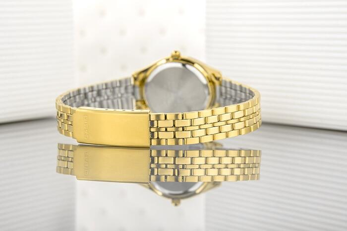 • Бренд: Casio • Модель: LTP‑1129N‑7A • Механизм: кварцевый • Циферблат: аналоговый • Корпус: нержавеющая сталь • Стекло: минеральное • Браслет: нержавеющая сталь • Водозащита: 30 м (3 бар) • Гипоаллергенно: да — не содержит никель • Диаметр корпуса: 27 мм • Диаметр циферблата: 21 мм • Толщина: 7 мм • Ширина браслета: 12 мм • Охват запястья: макс. ~180 мм Цветовое решение: • Корпус: золотой • Циферблат: белый • Часовые метки: золотые • Стрелки: золотые • Браслет: золотой Гарантия продавца: 24 месяца