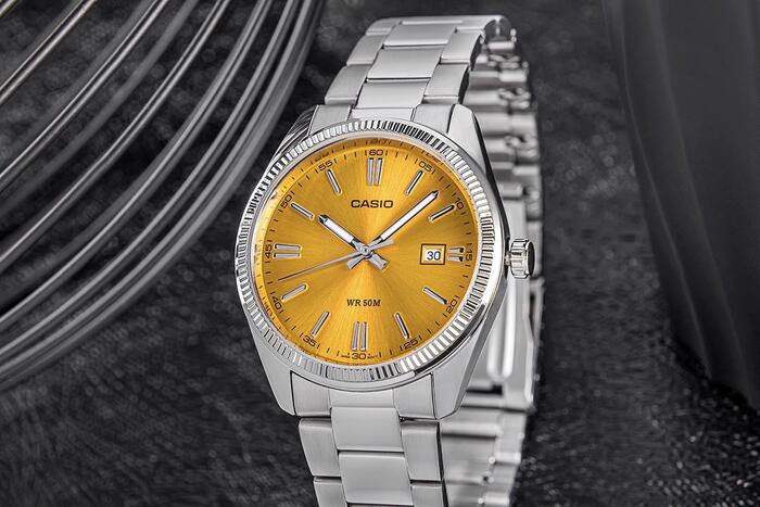 • Бренд: Casio • Артикул: MTP-1302L-9AVEF • Модель: Classic • Механизм: кварцевый • Циферблат: аналоговый • Корпус: нержавеющая сталь • Стекло: минеральное • Браслет: нержавеющая сталь • Особенности: люминесцентные стрелки Neobrite • Водозащита: 50 м (5 бар) • Гипоаллергенно: да — не содержит никель • Корпус: 38 мм • Циферблат: 32 мм • Толщина: 10 мм • Ширина ремешка: 20 мм • Охват запястья: макс. 210 мм Цветовое решение: • Корпус: серебристый • Циферблат: золотой • Часовые метки: серебристые • Стрелки: серебристые с люминесцентным покрытием • Браслет: серебристый Гарантия продавца: 24 месяца