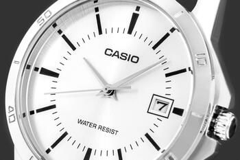 • Бренд: Casio • Модель: MTP-V004L-7AUDF • Механизм: точный кварцевый с тремя стрелками (часы, минуты, секунды) • Циферблат: аналоговый с функцией даты (день месяца) • Корпус: круглый, из нержавеющей стали • Стекло: минеральное, устойчивое к царапинам • Ремешок: ремешок из натуральной кожи • Подсветка: стрелки с люминесцентным покрытием • Водозащита: Water Resistant (WR) — защита от брызг, подходит для повседневного ношения • Гипоаллергенно: да — не содержит никель, безопасно для кожи • Диаметр корпуса: 40 мм • Диаметр циферблата: 33 мм • Толщина: 10 мм • Ширина ремешка: 20 мм ... • Водозащита: Water Resistant (WR) — защита от брызг, подходит для повседневного ношения • Гипоаллергенно: да — не содержит никель, безопасно для кожи • Диаметр корпуса: 38,8 мм • Диаметр циферблата: 35 мм • Толщина: 7,8 мм • Ширина ремешка: 19 мм • Охват запястья: 140–210 мм Цветовое решение: • Корпус: чёрный • Циферблат: серебристый с мягким световым переливом • Часовые метки / цифры: золотистые • Стрелки: золотистые • Секундная стрелка: золотистая • Ремешок: чёрный Гарантия продавца: 24 месяца