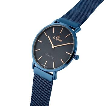Product description: • Бренд: G.Rossi • Артикул: 10771B-6F3 • Механизм: кварцевый • Циферблат: аналоговый • Корпус: нержавеющая сталь • Стекло: минеральное • Браслет: стальной миланский (mesh), регулируемый • Особенности: нет • Водозащита: 3 ATM • Гипоаллергенно: да — не содержит никель • Корпус: 40 мм • Циферблат: 35 мм • Толщина: 5,5 мм • Ширина браслета: 20 мм • Охват запястья: макс. 210 мм Colorway: • Корпус: металлический тёмно‑синий • Циферблат: тёмный металлический синий • Часовые метки: розовое золото • Стрелки: розовое золото • Браслет: тёмно‑синий миланский (mesh) More than just a watch — прекрасная идея подарка от G.Rossi, где время приобретает элегантную форму и добавляет стиля каждому моменту. Гарантия продавца: 24 месяца