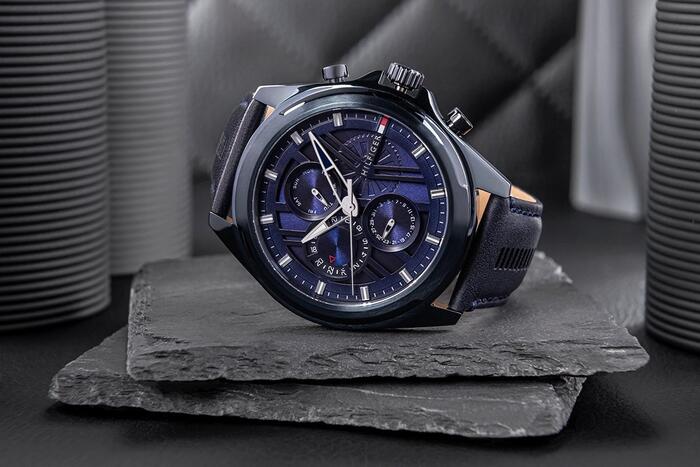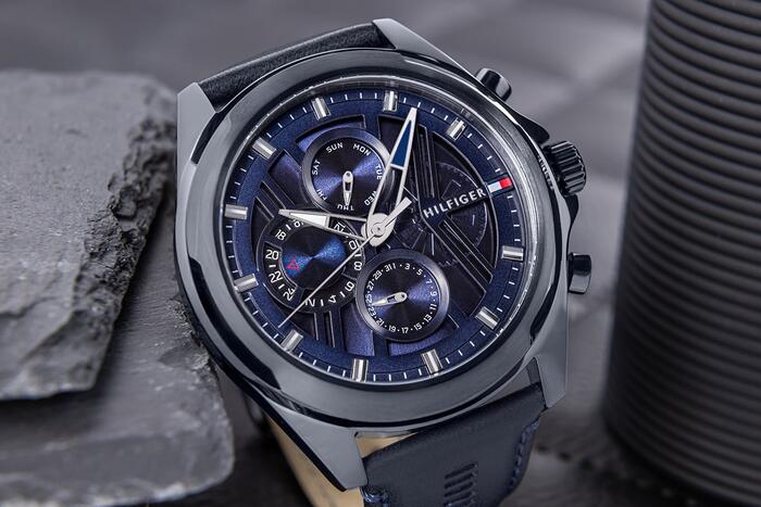 • Бренд: Tommy Hilfiger • Артикул: 1710655 • Модель: Jax • Механизм: кварцевый • Циферблат: аналоговый с хронографами (12/24-часовой формат и индикация дня/даты) • Корпус: нержавеющая сталь • Стекло: минеральное • Ремешок: натуральная кожа • Особенности: нет • Водозащита: 50 м (5 бар) • Гипоаллергенно: да — не содержит никель • Диаметр корпуса: 48 мм • Диаметр циферблата: 38 мм • Толщина: 12 мм • Ширина ремешка: 24 мм • Охват запястья: макс. 235 мм Цветовое решение: • Корпус: тёмно-синий • Циферблат: тёмно-синий • Часовые метки: серебристые • Стрелки: серебристые • Секундная стрелка: серебристая • Ремешок: тёмно-синяя кожа Гарантия продавца: 24 месяца