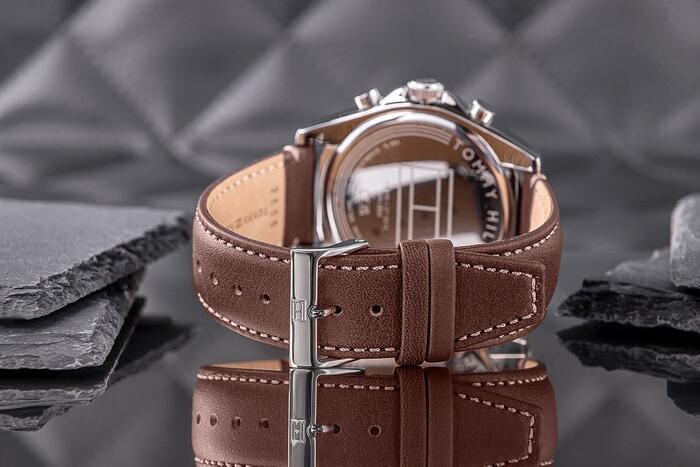 • Бренд: Tommy Hilfiger • Артикул: 1791837 • Модель: Parker • Механизм: кварцевый • Циферблат: аналоговый с субциферблатами хронографа (12/24‑часовой формат) и указателем дня недели и даты (день недели и число месяца) • Корпус: нержавеющая сталь • Стекло: минеральное • Ремешок: натуральная кожа • Особенности: люминесцентные часовые метки и стрелки • Водозащита: 50 м (5 бар) • Гипоаллергенность: да — не содержит никель • Диаметр корпуса: 44 мм • Диаметр циферблата: 37 мм Дополнительные характеристики: • Водозащита: 50 м (5 бар) • Гипоаллергенность: да — не содержит никель • Диаметр корпуса: 44 мм • Диаметр циферблата: 35 мм • Толщина: 10,3 мм • Ширина браслета: 21 мм • Охват запястья: до 210 мм Цветовое решение: • Корпус: серебристый • Циферблат: тёмно‑синий металлик (deep metallic navy) • Часовые метки: серебристые • Стрелки: серебристые с люминесцентным покрытием • Секундная стрелка: серебристая • Браслет: серебристый Гарантия продавца: 24 месяца