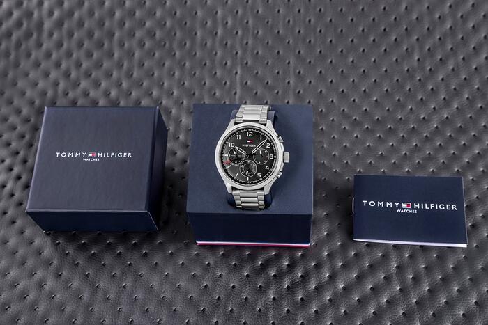 • Бренд: Tommy Hilfiger • Артикул: 1791852 • Модель: Asher • Механизм: кварцевый • Циферблат: аналоговый с хронографами • Корпус: нержавеющая сталь • Стекло: минеральное • Браслет: нержавеющая сталь • Особенности: нет • Водозащита: 50 м (5 бар) • Гипоаллергенно: да — не содержит никель • Диаметр корпуса: 45 мм • Диаметр циферблата: 37 мм • Толщина: 11 мм • Ширина браслета: 20,5 мм • Охват запястья: макс. 210 мм Цветовое решение: • Корпус: серебристый • Циферблат: матовый чёрный • Часовые метки / цифры: белые • Стрелки: белые • Секундная стрелка: чёрная с красным акцентом • Браслет: серебристый Гарантия продавца: 24 месяца