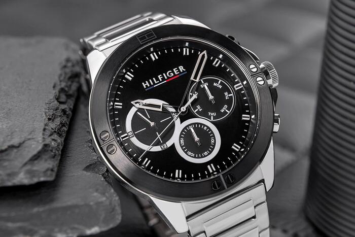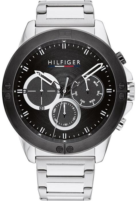 • Бренд: Tommy Hilfiger • Артикул: 1791890 • Модель: Harley • Механизм: кварцевый • Циферблат: аналоговый с хронографами (12/24-часовой формат и индикация дня/даты) • Корпус: нержавеющая сталь • Стекло: минеральное • Браслет: нержавеющая сталь • Особенности: нет • Водозащита: 50 м (5 бар) • Гипоаллергенно: да — не содержит никель • Диаметр корпуса: 46 мм • Диаметр циферблата: 37 мм • Толщина: 11,5 мм • Ширина браслета: 22 мм • Охват запястья: макс. 190 мм Цветовое решение: • Корпус: серебристый • Циферблат: чёрный • Часовые метки: серебристые • Стрелки: серебристые и чёрные • Секундная стрелка: серебристая • Браслет: серебристый Гарантия продавца: 24 месяца