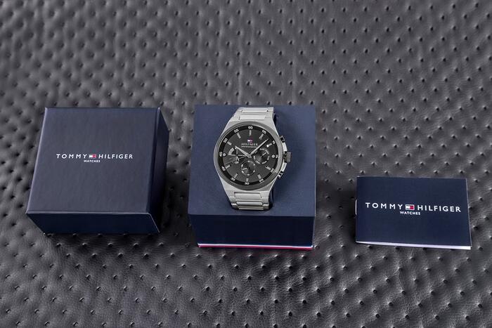 • Бренд: Tommy Hilfiger • Артикул: 1792087 • Модель: Dexter • Механизм: кварцевый • Циферблат: аналоговый с хронографами (12/24-часовой формат и индикация дня/даты) • Корпус: нержавеющая сталь • Стекло: минеральное • Браслет: нержавеющая сталь • Особенности: нет • Водозащита: 50 м (5 бар) • Гипоаллергенно: да — не содержит никель • Диаметр корпуса: 46 мм • Диаметр циферблата: 40 мм • Толщина: 11 мм • Ширина браслета: 22 мм • Охват запястья: макс. 200 мм Цветовое решение: • Корпус: серебристый • Циферблат: чёрный • Часовые метки: серебристые • Стрелки: серебристые • Секундная стрелка: «титановый» красный • Браслет: серебристый с матовой металлической отделкой Гарантия продавца: 24 месяца