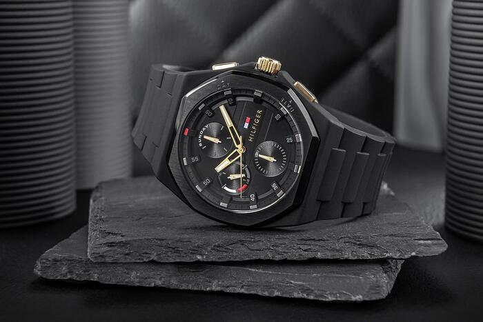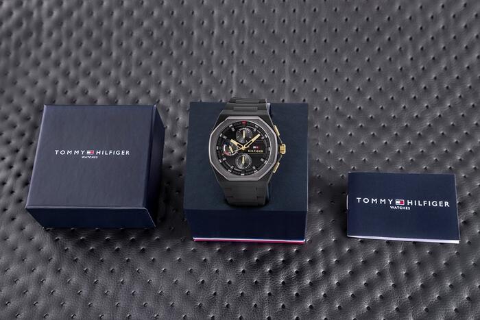 • Бренд: Tommy Hilfiger • Артикул: 1792120 • Модель: Neo • Механизм: кварцевый • Циферблат: аналоговый с хронографами (12/24-часовой формат и индикация дня/даты) • Корпус: пластик • Стекло: минеральное • Ремешок: силиконовый • Особенности: нет • Водозащита: 50 м (5 бар) • Гипоаллергенно: да — не содержит никель • Диаметр корпуса: 43 мм • Диаметр циферблата: 35 мм • Толщина: 11,5 мм • Ширина ремешка: 27 мм • Охват запястья: макс. 250 мм Цветовое решение: • Корпус: чёрный • Циферблат: чёрный • Часовые метки: серебристые • Стрелки: серебристые и белые • Секундная стрелка: золотая • Ремешок: чёрный Гарантия продавца: 24 месяца