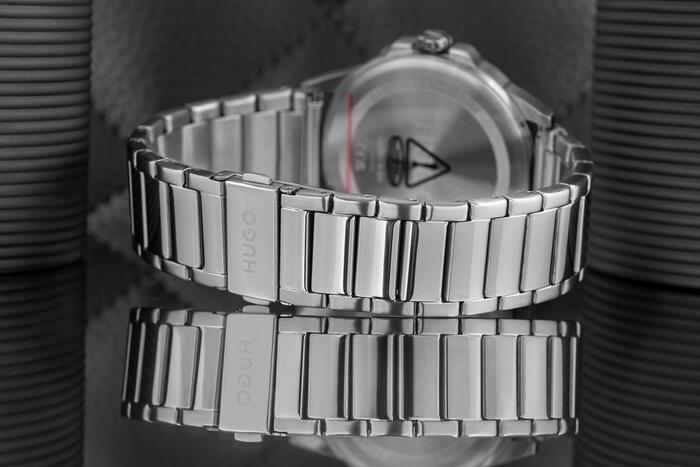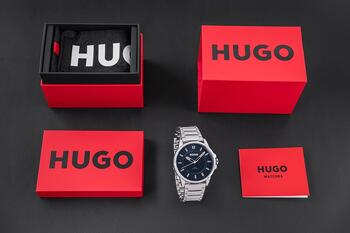• Бренд: Hugo Boss • Артикул: 1530291 • Модель: First • Механизм: кварцевый • Циферблат: аналоговый • Корпус: нержавеющая сталь • Стекло: минеральное • Браслет: нержавеющая сталь • Особенности: нет • Водозащита: 3 бар • Гипоаллергенно: да — не содержит никель • Диаметр корпуса: 43 мм • Диаметр циферблата: 38 мм • Толщина: 9,6 мм • Ширина браслета: 22 мм • Охват запястья: макс. 210 мм Цветовое решение: • Корпус: серебристый • Логотип на циферблате: белый • Циферблат: металлический тёмно-синий • Часовые метки: стального цвета • Стрелки: стального и серого цвета • Секундная стрелка: белая • Браслет: серебристый • Застёжка: серебристая • Заводная головка: серебристая Гарантия продавца: 24 месяца