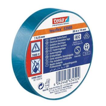 Izolācijas lente Tesa Professional 53988 Zila, 20 m/19 mm:Elektriskās izolācijas lente tesaflex 53988 ir uzticams palīgs elektriķiem, mehāniķiem un citiem amatniekiem. Tai raksturīgs salīdzinosi biezs starpslānis, augsts elastīgums un ļoti labi salipšanas rādītāji (pat pie tērauda un zemām temperatūrām). PVC izolācijas lente ir piemērota ne tikai izolācijai un marēķēšanai, bet arī remonta darbiem un saišķu veidošanai. Tā kā ir pieejama daudzās krāsās - sarkana, zila, brūna, melna, balta, pelēka, zaļa, dzeltena un zaļi-dzeltena, to var lietot arī kā marķēšanas līmlenti. tesaflex 53988 ir sertificēta atbilstoši saistošiem standartiem un ir droši lietojama. Galvenie lietojuma veidi