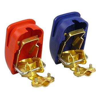 Akumulatoru klemmes komplekts. Komplektā ir divas klemmes, viens mīnusam (zils) un viens plusam (sarkans). Akumulatora spaiļu skavām ir plastmasas aizsardzība, kas nodrošina mazāku akumulatora spaiļu oksidēšanās iespējamību. Specifikācijas: