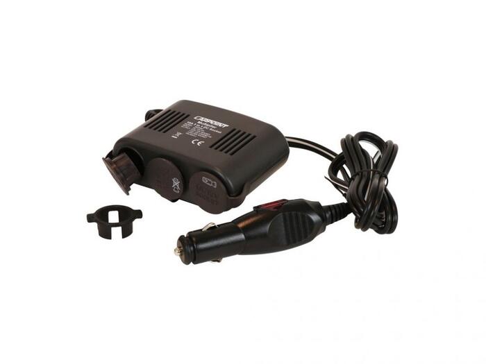 Piepīpētāja sadalītājs uz trīs 12V ligzdām. Piemērots standarta 21 mm piepīpētāja ligzdai. Ar LED indikāciju, kabeļa garums 130 centimetri. Kontaktligzdu var uzstādīt ar komplektā iekļauto divpusējo līmlenti un skrūvju stiprinājumu. Kontaktligzda ir izņemama no turētāja. Aprīkots ar maināmu 10A drošinātāju. Īpašības: