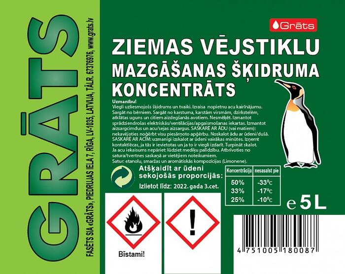 Vējstiklu mazgašanas līdzeklis koncentrāts ''Pingvīns - 65C°'' 5 litri.