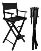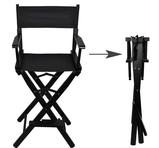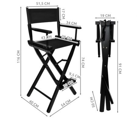 СКЛАДНОЕ КРЕСЛО ДЛЯ ГРИМЕРА - исключительно прочное и удобное кресло для макияжа, визажа и характеризации, также отлично подходит в качестве кресла режиссера. Оно изготовлено из высококачественной буковой древесины и черного алюминия. Сиденье изготовлено из водонепроницаемого материала Oxford 600D. Изделие имеет грузоподъемность до 140 кг! Благодаря тому, что оно изготовлено из дерева, оно имеет чрезвычайно прочную конструкцию, что обеспечивает комфорт сидящему человеку. Ножки у его основания делают его устойчивым и гарантируют безопасность во время использования.