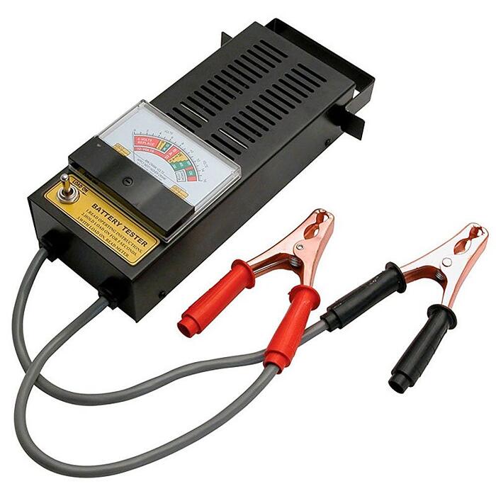 Profesionālas kvalitātes akumulātoru slodzes testeris. Akumulatoru testeris ir paredzēts vieglo automašīnu, furgonu, 4x4 un lauksaimniecības transportlīdzekļu 6 un 12 voltu svina-skābes akumulatoru statusa un stāvokļa pārbaudei. Turklāt ir iespēja pārbaudīt akumulatora uzlādi. Skaitītājs uzrāda stāvokli, izmantojot krāsu kodējumu. Kompaktam un pārnēsājamam akumulatora testerim ir spēcīga tērauda konstrukcija ar rokturi un skavu turētājiem. Akumulatora testeris ir aprīkots ar daļēji izolētām akumulatora skavām. Drošs lietošanā un bez dzirkstelēm. Pieslēdzot pie akumulātora var noteikt;
