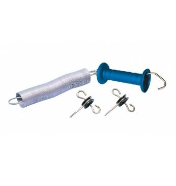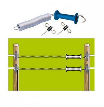 Комплект для ворот для эл. пастбищ. Пружина растягивается до 5 м. Эти ворота не рекомендуются для конских загонов, потому что в пружину могут застрять волосы.