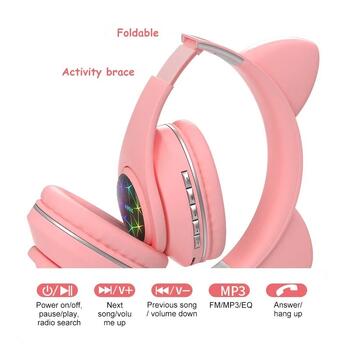 Наушники с кошачими ушками и разноцветной подстветкой - отличный подарой для вашего ребёнка, который хочет не только слушать музыку, но и выделятся. Наушники оснащёны Bluetooth и могут подключатся к телефону, компьютеру, планшету или другому устройство с поддержкой Bluetooth. В наушниказ встроен плеер для проигрывания музыки с SD карт памяти до 32GB (FAT) и сжатыми форматами музыки. Гарантия продавца: 24 месяца