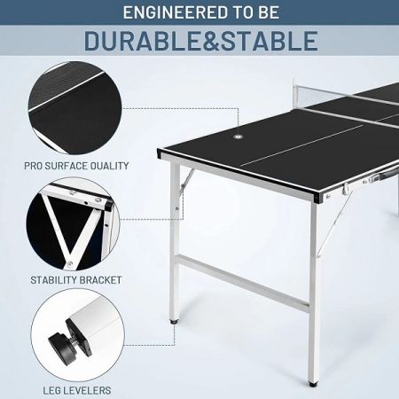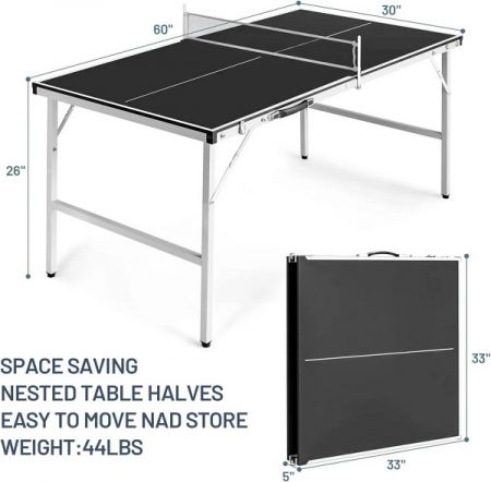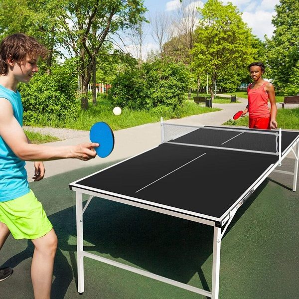 Полный комплект: в комплект входит полностью собранный теннисный стол, две ракетки и два мяча. Моментально играйте: этот компактный и легкий стол для настольного тенниса готов к игре, просто разложите ножки. Внутренняя или наружная: ножки и корпус из высококачественного металлического профиля с порошковым покрытием, детская площадка - плита мдф 12мм. Теннисный стол можно использовать как в помещении, так и на улице, но мы рекомендуем держать его подальше от воды. Удобное складывание и хранение: быстро и легко собрать стол для игры или наоборот - поставить на хранение - нужно только сложить ножки и поставить две панели вплотную друг к другу, фиксируемые металлическими крючками . Собранный стол занимает очень мало места - его можно хранить под кроватью, в шкафу или прислонить к стене. С помощью ручки его удобно переносить в другие комнаты или транспортировать в нужное место. Отлично для небольших пространств: этот компактный теннисный стол идеально подходит для игры в небольших помещениях, квартире или игровой комнате, где стол для соревнований невозможен. Технические характеристики: Размер стола (см): 183 х 92 х 76 Тип детской площадки: МДФ Толщина детской площадки (мм): 12 Периметр детской площадки (мм): 30 х 20 Окружность ноги (мм): 30 х 30 Регулируемые ножки стола (мм): 20 Комплектация: 2 ракетки, 2 мяча, сетка Вес стола (кг): 21 Вес продукта с упаковкой (кг): 25 Размер упаковки (см): 100 х 100 х 12 Гарантия продавца: 24 месяца