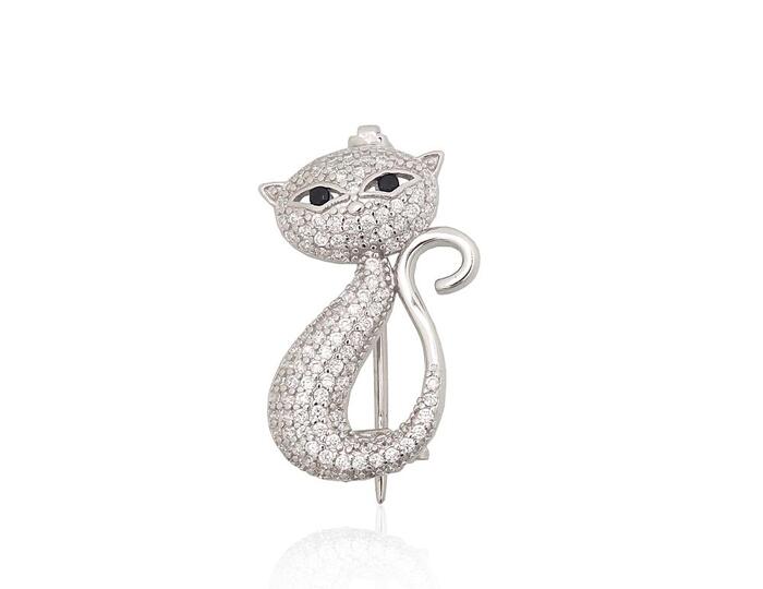 Серебряная брошь #2920234(PRh-Gr)_CZ+CZ-BK, Серебро 925°, родий (покрытие), Цирконы, 2.8 гр.