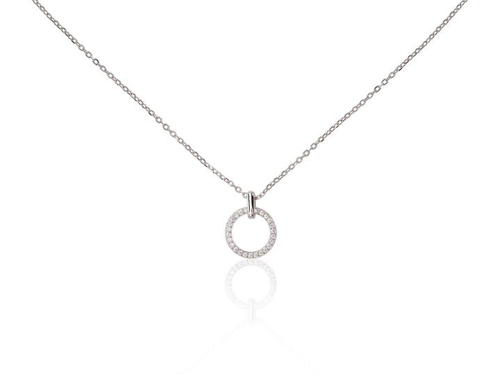 Серебряное колье #2500153(PRh-Gr)_CZ, Серебро 925°, родий (покрытие), Цирконы, длина: 42 см, 1.9 гр.