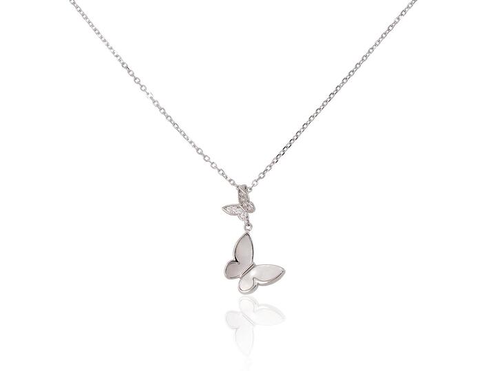 Серебряное колье #2500157(PRh-Gr)_CZ+PL, Серебро 925°, родий (покрытие), Цирконы, Перламутр, длина: 42 см, 2.4 гр.