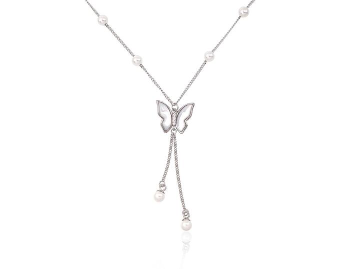 Серебряное колье #2500158(PRh-Gr)_CZ+PE+PL, Серебро 925°, родий (покрытие), Цирконы , Жемчуг , Перламутр. Размер: 42. Вес: 3.5Добавить в корзину€ 67.65