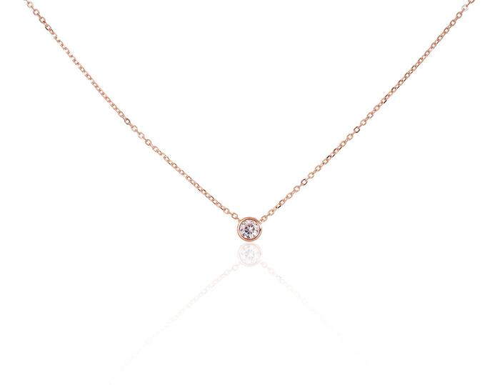 Серебряное колье #2500152(PAu-R)_CZ, Серебро 925°, красное золото (покрытие), Цирконы, длина: 42 см, 1.8 гр.