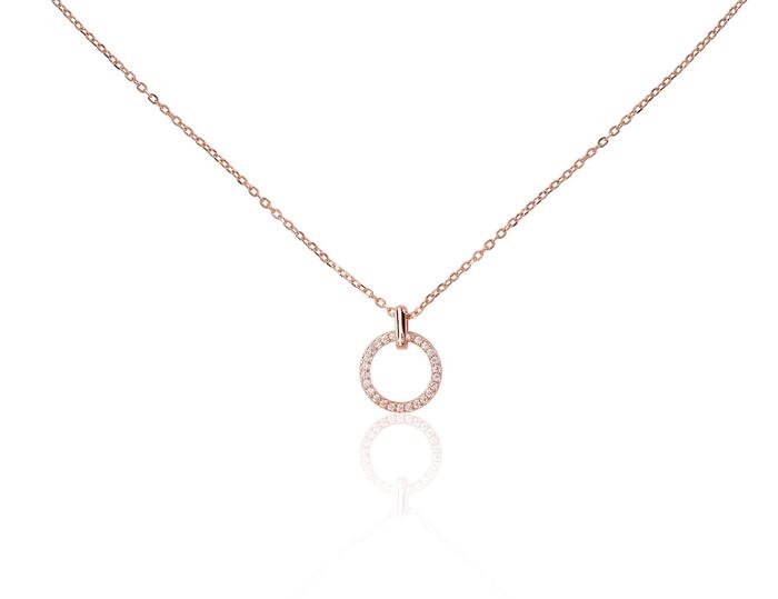 Серебряное колье #2500153(PAu-R)_CZ, Серебро 925°, красное золото (покрытие), Цирконы, длина: 42 см, 1.8 гр.