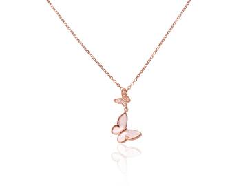 Серебряное колье #2500157(PAu-R)_CZ+PL, Серебро 925°, красное золото (покрытие), Цирконы, Перламутр, длина: 42 см, 2.4 гр.