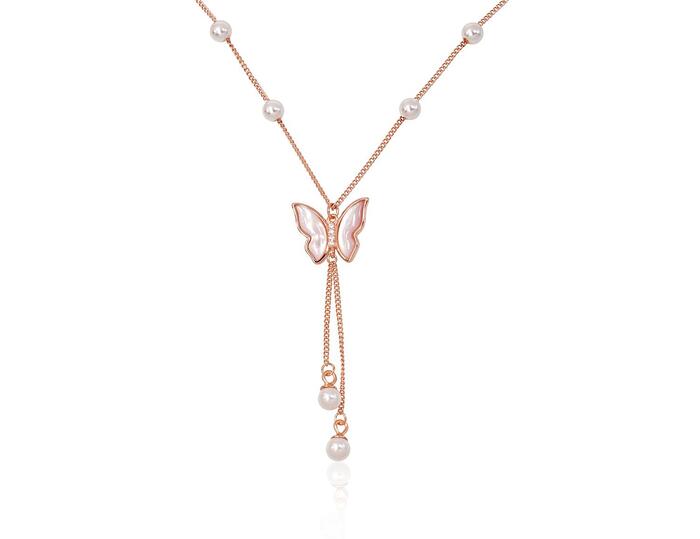 Серебряное колье #2500158(PAu-R)_CZ+PE+PL, Серебро 925°, красное золото (покрытие), Цирконы , Жемчуг , Перламутр. Размер: 42. Вес: 3.5Добавить в корзину€ 62.04