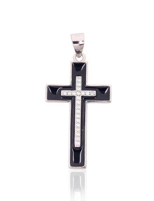 Серебряный кулон #2301981(PRh-Gr)_CZ+ML-BK, Серебро 925°, родий (покрытие), Цирконы , Ювелирная эмаль. Вес: 1.9Добавить в корзину€ 20.73